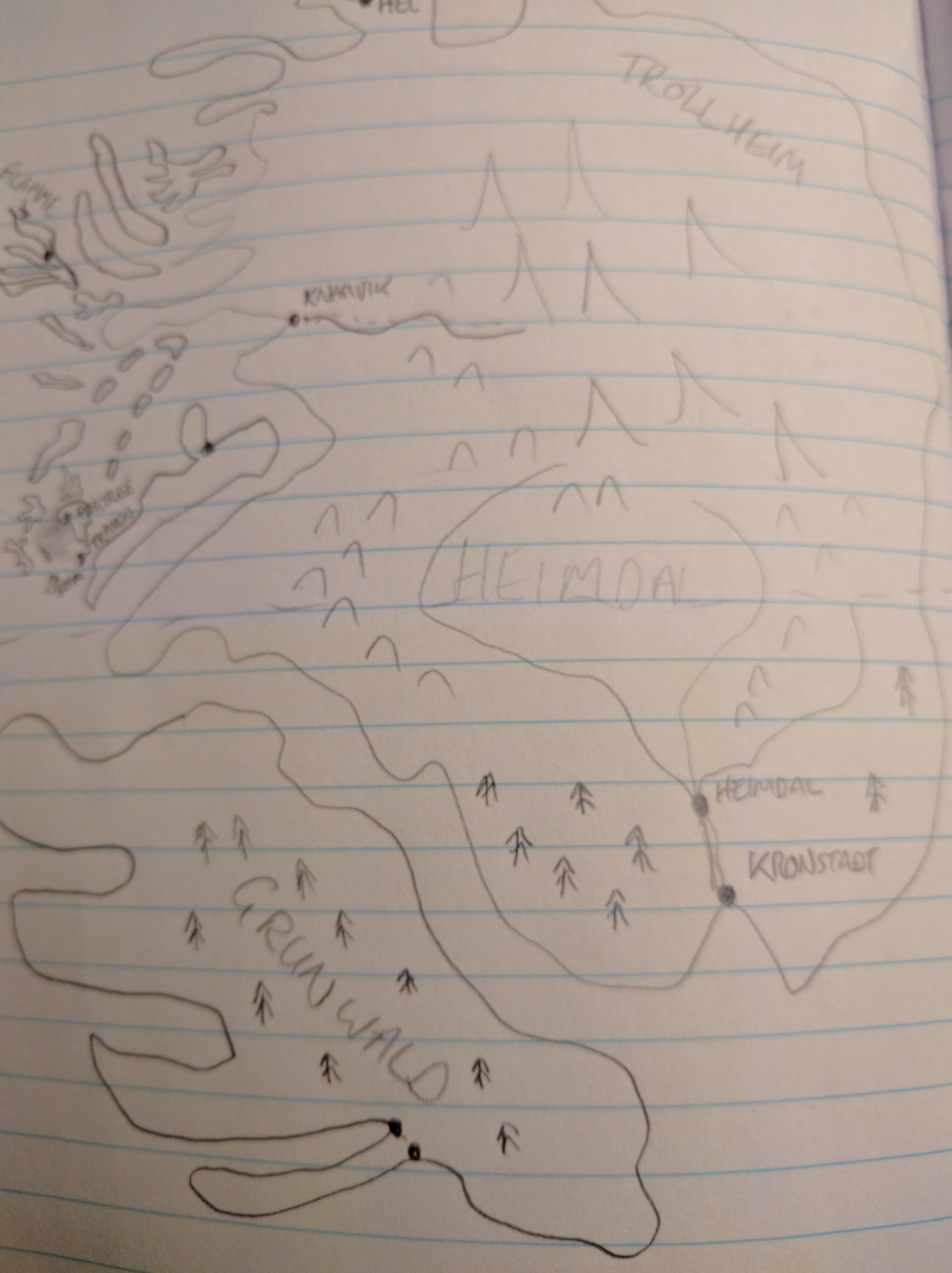 In this world Heroes are descended from the Gods, and they do extraordinary things. Yngvild is a shepherd living in an isolated fishing community on the Western edge of civilization. The story is the events that uncover her heritage as a hero, and her early adventures reacting to them. Her best friend, Noren, is also a hero, both having been hidden away from the world by Old Bjorn until they were old enough.